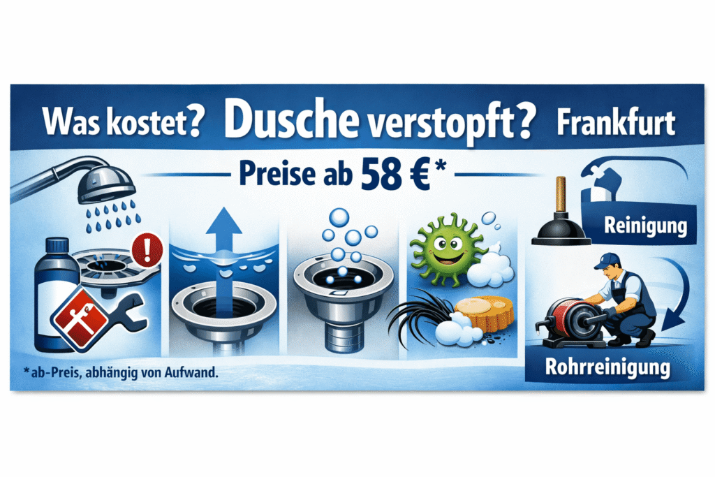 Was kostet dusche rohr verstopft was tun? Preise ab 58 € in Frankfurt im Überblick