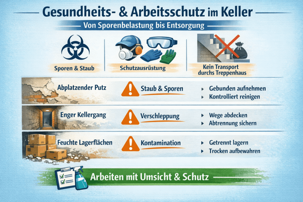 Welche Gesundheits- und Arbeitsschutzregeln im Keller gelten – von Sporenbelastung bis Entsorgung
