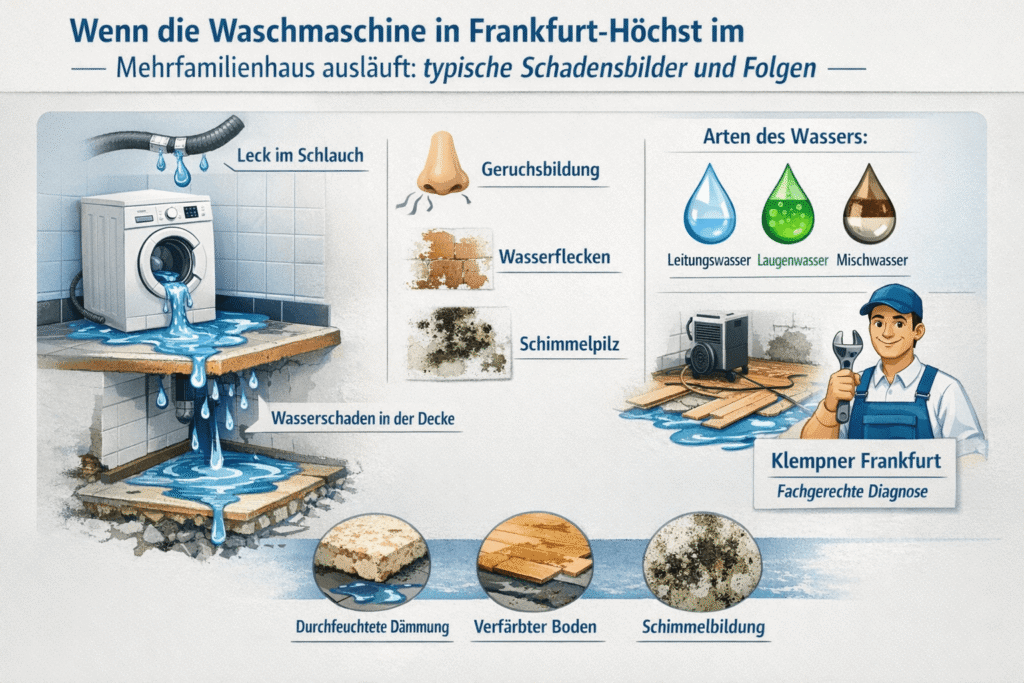Waschmaschinen Reparatur Frankfurt Höchst – Wenn die Waschmaschine in Frankfurt-Höchst im Mehrfamilienhaus ausläuft: typische Schadensbilder und Folgen