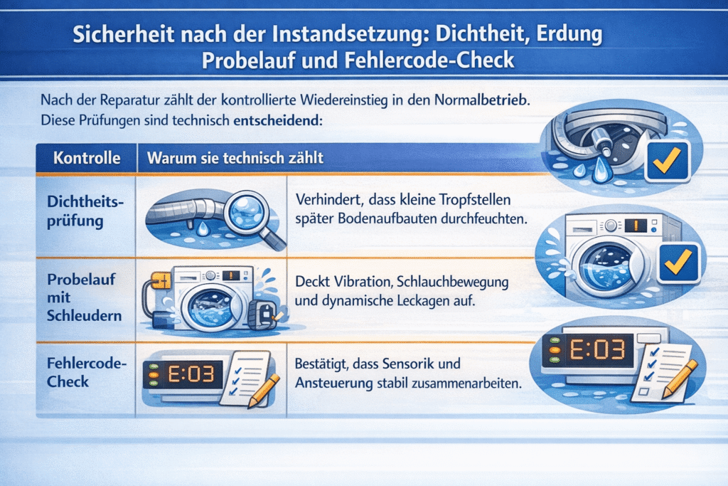 Sicherheit nach der Instandsetzung: Dichtheit, Erdung, Probelauf und Fehlercode-Check