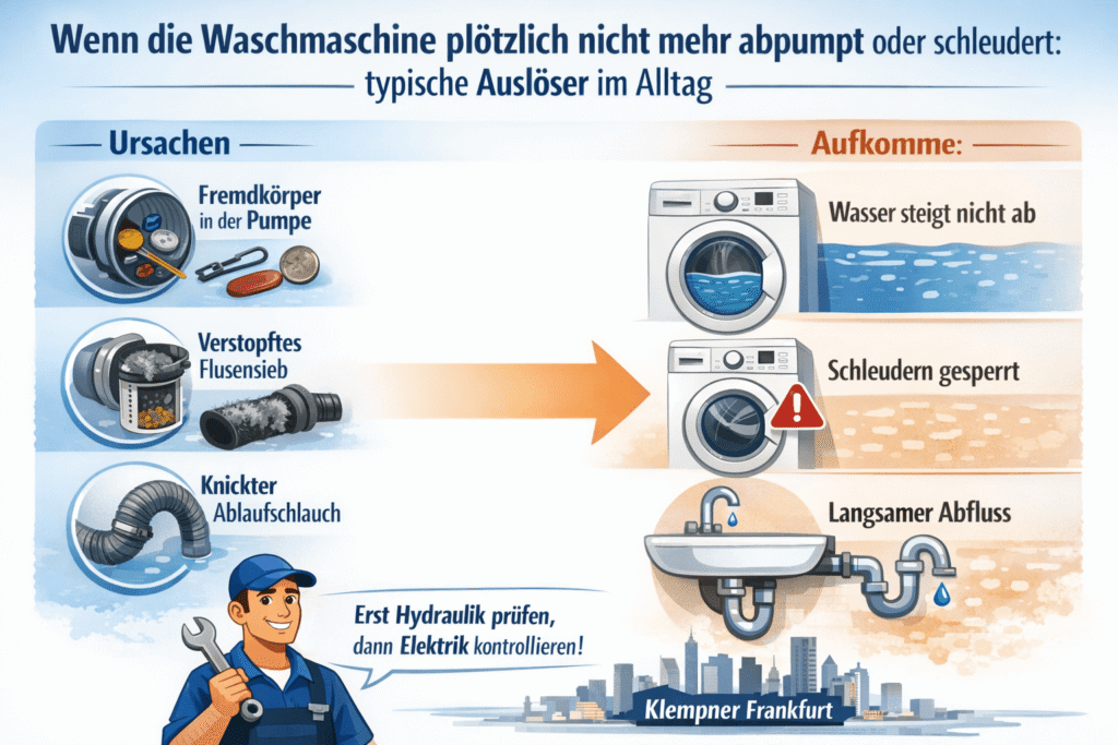 Waschmaschinen Reparatur in der Nähe – Wenn die Waschmaschine plötzlich nicht mehr abpumpt oder schleudert: typische Auslöser im Alltag